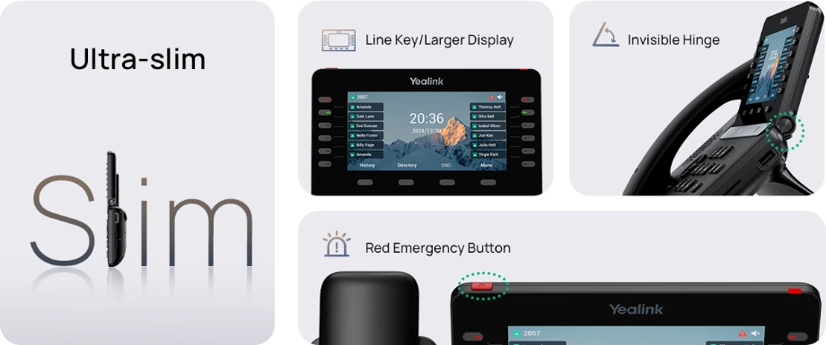 The Yealink SIP-T85W is a premium smart desk phone built for busy executives and professionals who demand modern style, intelligent performance, and effortless usability. Featuring an all-new fashionable slim body, larger 5.5" adjustable color touchscreen, invisible hinge, emergency button, line keys, and antimicrobial materials, the T85W offers a comfortable hand feel and hygienic design ideal for today's professional environments.